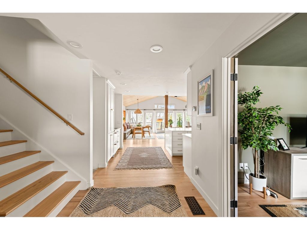 Come see one of the most stunning and thoughtfully remodeled homes in Heatherwood! Since its transformation in 2020, this property has thrived as a profitable, legal short-term rental, featuring both the upper and lower-level living spaces offered separately to guests. Incredible opportunity to inherit the business and offset your mortgage while you live in one part and rent the other. Or enjoy the entire home yourself with a spacious and sun filled living space upstairs and a generous mother-in-law suite downstairs with full kitchen and separate rear entry.This isn't your typical quick flip-every detail has been elevated with high-end finishes, including Cafe appliances, Brizo faucets, a gorgeous 9-foot quartz waterfall island, LED lighting, gleaming hardwood floors, Pella windows, and custom designer touches throughout. Set on a third of an acre, the outdoor space is equally as impressive. Relax or entertain on the comfortable back deck or lower gravel patio. Grow your own veggies in the raised garden bed, and enjoy the expansive lawn with snow-capped mountain views. There's even an unfinished shed with electricity that could serve as a home office, playhouse, or your dream "she shed" or "man cave." Altogether, the home features two full kitchens, two laundry areas, a dog wash, RV parking with a 50-amp hookup, and a two-car garage with EV charger, currently a game room and workout space for guests. Major systems have been updated, including newer HVAC components and a brand-new sewer line. Heatherwood is a vibrant community with its own sought-after elementary school, a nearby park, and easy access to hiking and biking trails. Plus, it's just minutes to Gunbarrel's restaurants and breweries, and a breeze to get to downtown Boulder, Longmont and beyond. This home is truly one-of-a-kind, blending quality craftsmanship and design with an opportunity to generate income as you please. You must see it in person to fully appreciate its charm, versatility, and potential!