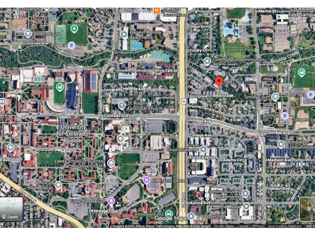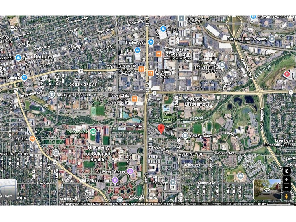 Light-filled corner unit 2-bed, 2-bath Gold Run condo with a dedicated underground parking space overlooking open space, a seasonal stream, and bridge, just minutes from CU via underpass and Boulder Creek Path. No stairs to access the unit, yet the corner location provides an elevated balcony that offers the feel and privacy of a second-floor home. Gold Run features newly renovated amenities, including a clubhouse, pool, hot tub, steam and sauna rooms, tennis courts, basketball courts, volleyball court, and fitness center. Recent upgrades include LVP flooring in the main living areas, newer carpet in the bedrooms, fresh interior paint, washer/ dryer, and a new electric fireplace stove providing both ambiance and supplemental heat. The unit also includes a private patio with storage closet. All appliances are included, HOA dues cover water & sewer. Minutes to Scott Carpenter Park, trails, shopping, & restaurants. The property has been consistently rented since purchase and is currently leased through May.