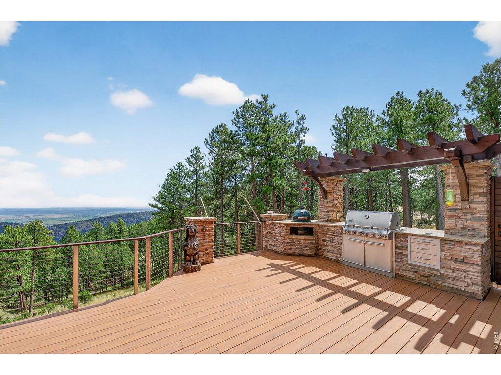 This stunning luxury mountain home offers the perfect blend of serene seclusion and convenient access, with breathtaking panoramic views of rolling hills and open plains-all just minutes from town for an easy commute. A rare opportunity to own a newer mountain retreat, this meticulously designed home boasts top-tier upgrades, elegant finishes, fresh exterior paint, and ample space for entertaining guests or enjoying large family gatherings. Exceptional features include a main-level primary suite with a spa-like luxury master bathroom, a spacious rec room, sophisticated office spaces, and four additional bedrooms-one en-suite and another with a private bath. Lower level is complete with a separate entrance for privacy and separated living areas. The expansive chef's kitchen is a dream, complemented by a wine cellar, custom stonework, and a cozy great room with a wood-burning fireplace and hardwood floors. Additional highlights include a home gym, an oversized three-car garage with abundant storage, a dedicated work/hobby shop, a backup generator, brand-new furnaces, a tankless water heater, separate mud room/laundry and a whole-house water purification system with reverse osmosis for the ice maker and faucet. Set on over an acre of beautifully landscaped land, the outdoor living spaces are just as impressive, featuring lush garden beds, multi-level decks, a built-in grilling area, and a private spa where you can soak in the dazzling city lights. Nestled in a quiet, low-traffic neighborhood with excellent schools and a nearby school bus stop, this peaceful retreat offers both luxury and convenience. Easy to show and flexible closing date. Pool table, TV's, shelving and work bench in work/hobby shop, can all be included. ATV with snow-plow is negotiable along with some furniture if buyer is interested. Buyer to verify all measurements.
