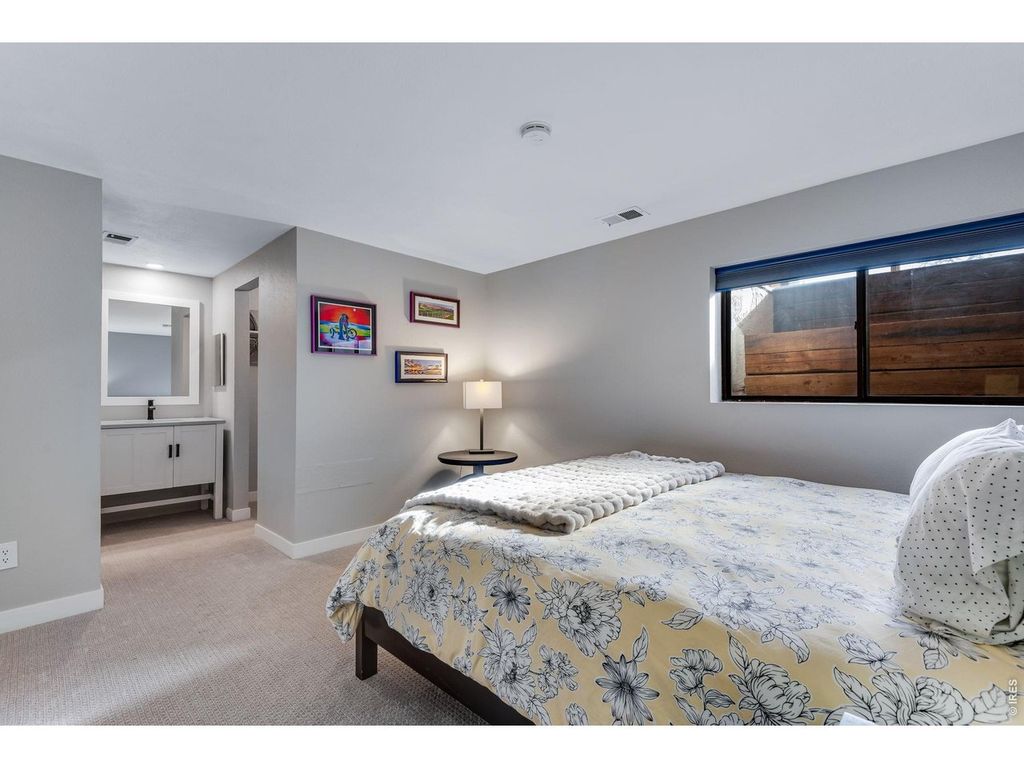 Welcome to a bright, inviting Boulder townhome that blends modern updates with an easy, comfortable layout - all tucked into a quiet cul-de-sac steps from Elks Park. This 3-bedroom, 1.5-bath home lives larger than its 1,560 square feet, thanks to an open main level with hardwood floors, vaulted ceilings, skylights, and a south-facing sunroom that fills the space with natural light. The updated kitchen connects seamlessly to the dining and living areas, where a gas fireplace creates a warm focal point. Downstairs, all three bedrooms enjoy naturally cool temperatures in summer, and the primary suite includes a walk-in closet plus an additional vanity. A mini-split adds efficient cooling and supplemental heat. Recent improvements - including a new furnace and hot water heater (Nov '23), new carpet and paint, updated kitchen and baths, new composite deck, and xeriscape landscaping - make this home truly move-in ready. The oversized detached garage offers excellent storage and 220V EV charging, with an additional surface parking space beside it. The large back deck opens directly to community open space, creating a peaceful extension of your living area. The HOA provides two pools, tennis courts, and miles of paths, making it easy to enjoy Boulder's outdoor lifestyle. Several neighbors have expanded their homes by finishing the upper sun space, offering a rare opportunity for future square footage. A warm, welcoming home in an unbeatable location - ready for its next chapter.