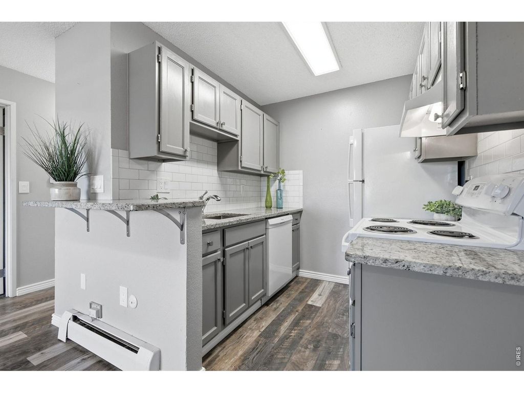 Newly renovated 1 bedroom/1 bathroom condo located on the top 3rd floor of the desirable Remington Post community in North Boulder. This secure locked building offers elevator access and off-street parking. Remodeled kitchen with granite countertops, tiled backsplash, and LED lighting. The open floor plan offers a bright, airy living area w/ wood floors that opens to a private balcony with scenic foothills views to enjoy your morning coffee. Remodeled full bathroom w/ beautiful vanity and marble tile in the shower/bath. Wall A/C unit, as well as ceiling fan. The home is light, clean, and well-maintained, with a sliding glass door leading to the balcony that brings in abundant natural light. All appliances are included, and tasteful updates throughout make it ready for immediate occupancy. The layout provides both a sense of openness and functional living space. Residents of Remington Post enjoy a wide array of HOA amenities, including a heated salt water indoor pool, sauna, updated clubhouse, exercise room, tennis courts, outdoor basketball court, and secure building access. The nearby Howard Huston Park and close-by trail system offer easy access to outdoor recreation. Conveniently located near grocery store, Fitness Center, shops, coffee houses, and popular dining options such as The Cork, Vics Coffee House, local sushi restaurant. The property offers quick access to Foothills Parkway and the Diagonal Highway for easy access to Denver and Longmont. There is a newly completed bike trail close-by for enhanced mobility throughout the area. This bright and welcoming condo offers amazing value within the city of Boulder, combining comfort, location, and outstanding community amenities in one of Boulder's most enduring and desirable neighborhoods.--