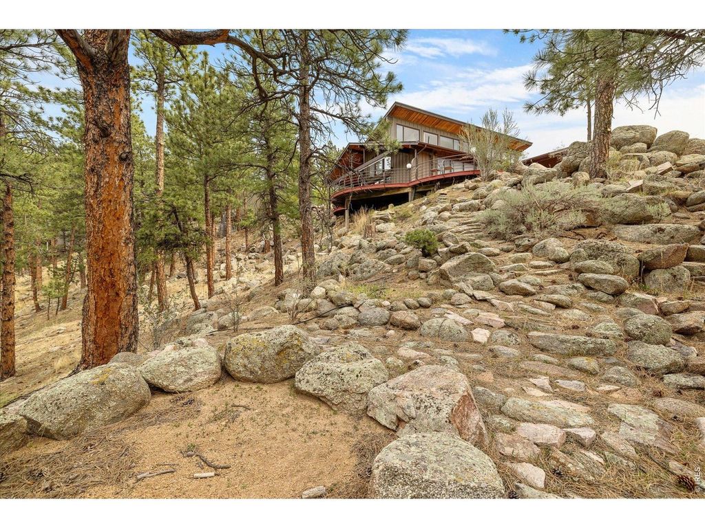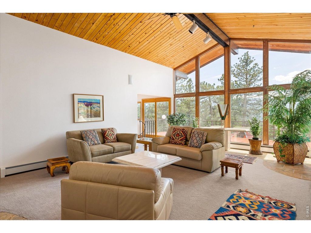 Step through the front door to breathtaking Continental Divide views stretching in every direction. Ideally positioned just 7 minutes from downtown Boulder, this architecturally masterful passive solar home basks in full sun and seamlessly blends indoor and outdoor living through expansive windows and wraparound decks. The architect-designed eave system shades the south-facing windows in summer while maximizing solar heat gain in winter, and a Trombe wall with mechanical air circulation keeps the home naturally efficient year-round. The chef's kitchen is built for serious entertaining, while the grand primary suite features a luxurious 6-piece bath. A classic wood-burning fireplace anchors the living space for cozy evenings at home. The finished basement offers a cool retreat, an indoor cultivation area, and a spa-inspired bath with steam room and second shower. A private stone patio off the guest bedroom adds another layer of outdoor living. The studio is a standout space - featuring custom cabinetry, a catwalk designed for full window access, and a closet with existing water lines that could easily be converted to a darkroom or additional bath. The oversized 2-car garage goes well beyond parking, complete with an ingenious temperature-controlled wine room cooled naturally by well water circulation, a cedar closet, and additional attic storage - a rare combination of function and luxury seldom found at this level. Outside, the property is nothing short of extraordinary - a private nature trail winds through the grounds, thoughtfully built with accessibility in mind, while a zip line, ninja course, and treehouse offer endless outdoor adventure for the young and young at heart. Nestled in coveted Sunshine Canyon - known for its privacy, abundant sunshine, and unbeatable proximity to Boulder - this is a rare offering for the discerning buyer who appreciates inspired design, self-sufficient living, and a home that truly has it all.