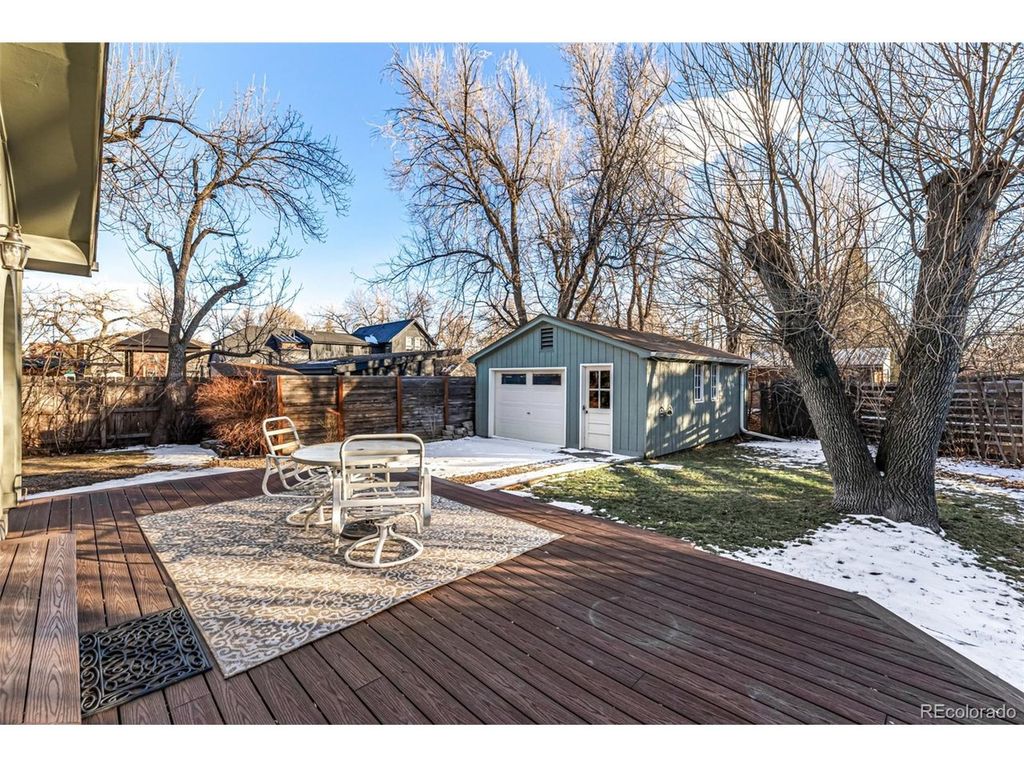 This charming, fully fenced single-story home is ready to welcome its next owner. Step through the foyer into a bright, open interior where a soft, neutral palette is enhanced by a blend of tile and wood flooring, skylights that flood the space with natural light, and an airy, inviting ambiance throughout. The living room is anchored by a cozy freestanding fireplace, creating an ideal setting for relaxed evenings or intimate gatherings. Just off the main living area, a plush, carpeted den with elegant French doors offers exceptional versatility-perfect for a home office, media lounge, or peaceful retreat. The beautifully appointed kitchen is both functional and warm, featuring an abundance of honey oak cabinetry, stainless steel appliances, granite countertops, and a breakfast bar island ideal for casual dining or entertaining. The adjacent dining area opens seamlessly to the backyard through sliding glass doors, encouraging effortless indoor-outdoor living. The primary suite serves as a private sanctuary, highlighted by a stylish barn-style sliding door leading to a well-designed ensuite with a tub/shower combination and a spacious walk-in closet. Outdoors, the backyard is designed for enjoyment and relaxation with a covered patio, an additional deck, lush green lawn, and mature shade trees that provide both beauty and privacy. A detached garage adds convenience and functionality. This thoughtfully designed home offers comfort, character, and charm-an opportunity not to be missed.