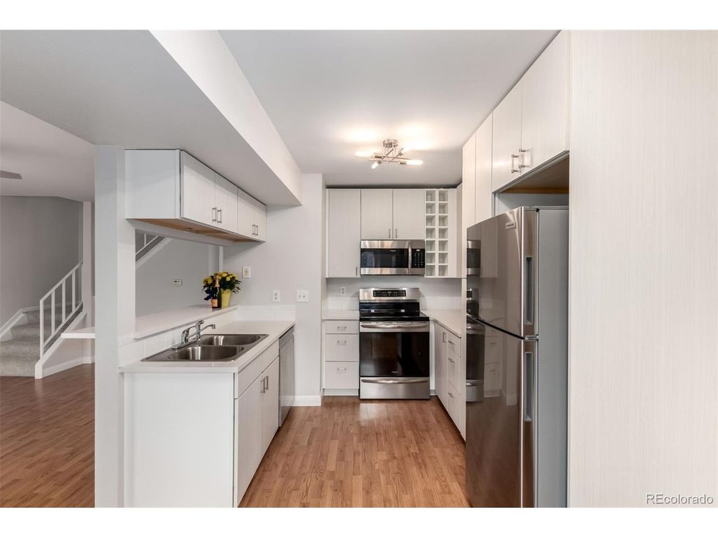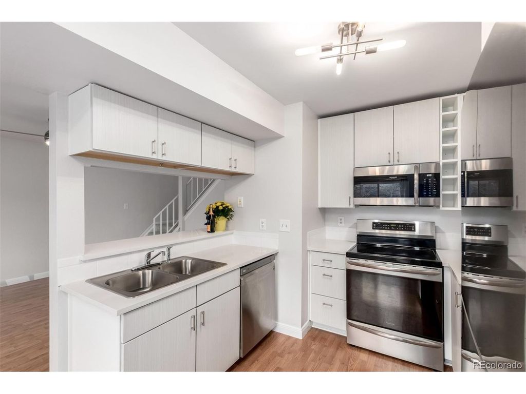 Set within the vibrant fabric of Boulder, where neighborhood paths connect to beloved cafes, parks, and everyday conveniences, this thoughtfully renovated townhome offers a rare balance of simplicity, style, and effortless living. Every surface has been reconsidered with intention, creating a home that feels fresh, functional, and quietly refined. A bright front entry opens to an airy main living space grounded by warm neutral plank flooring and soft natural light. Fresh paint provides a clean canvas, allowing art, furnishings, and personal expression to take center stage. The living area flows easily toward the kitchen through a timeless pass through, maintaining connection between rooms while preserving distinct spaces for gathering and retreat. The kitchen is both beautiful and practical. Crisp white cabinetry, stainless steel appliances, and a chic modern sputnik light fixture lend contemporary character, while the efficient galley layout maximizes storage and prep space. A casual dining nook sits beside glass doors that invite sunlight inside and lead to a private patio, an inviting extension for morning coffee or evening unwinding. Upstairs, two well planned bedrooms prioritize comfort and utility. The primary suite features dual closets and a full wall of built-in shelving, blending form and function with ease. The secondary bedroom offers smart proportions and generous storage. The updated bath feels elevated and serene with modern finishes and clean lines. Additional improvements include refreshed kitchen and baths, flat ceilings, new carpet, new paint throughout, updated appliances, and a renovated laundry + powder room combination. A dedicated carport adds everyday convenience. Efficient in size yet rich in livability, this renovated two bedroom, two bath townhome delivers low maintenance design, central access to everything Boulder offers, and a welcoming backdrop for a life well lived.