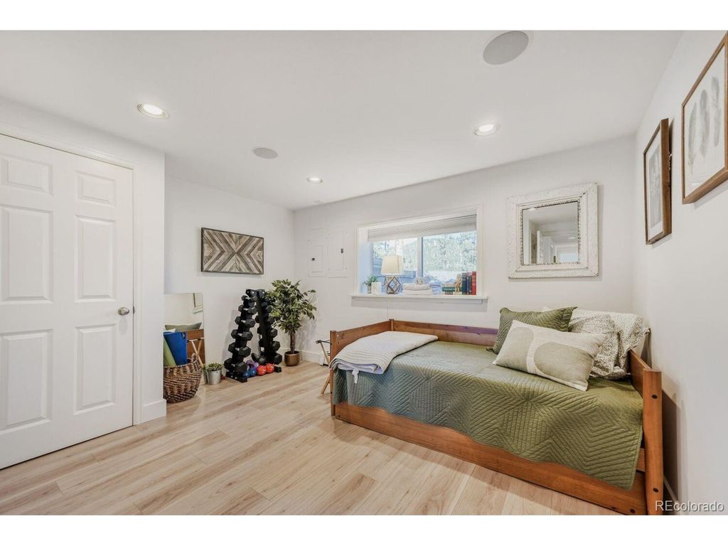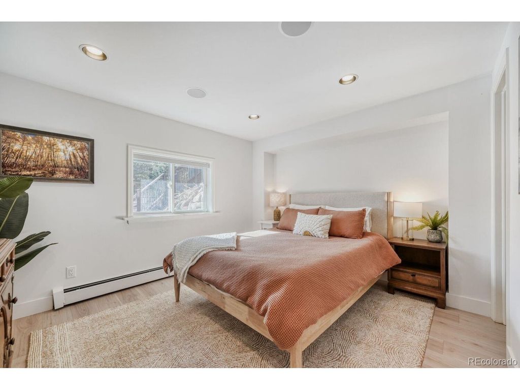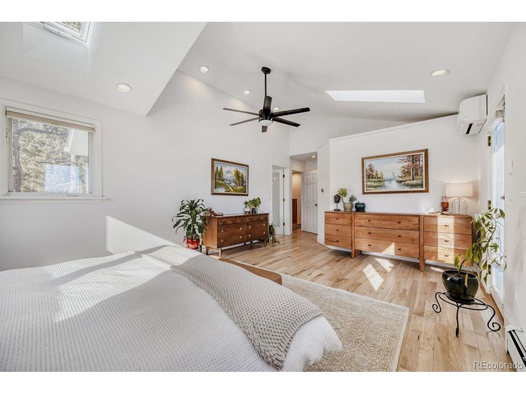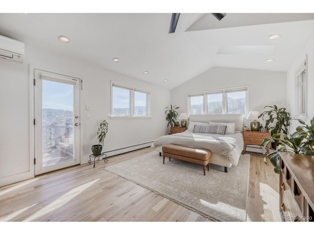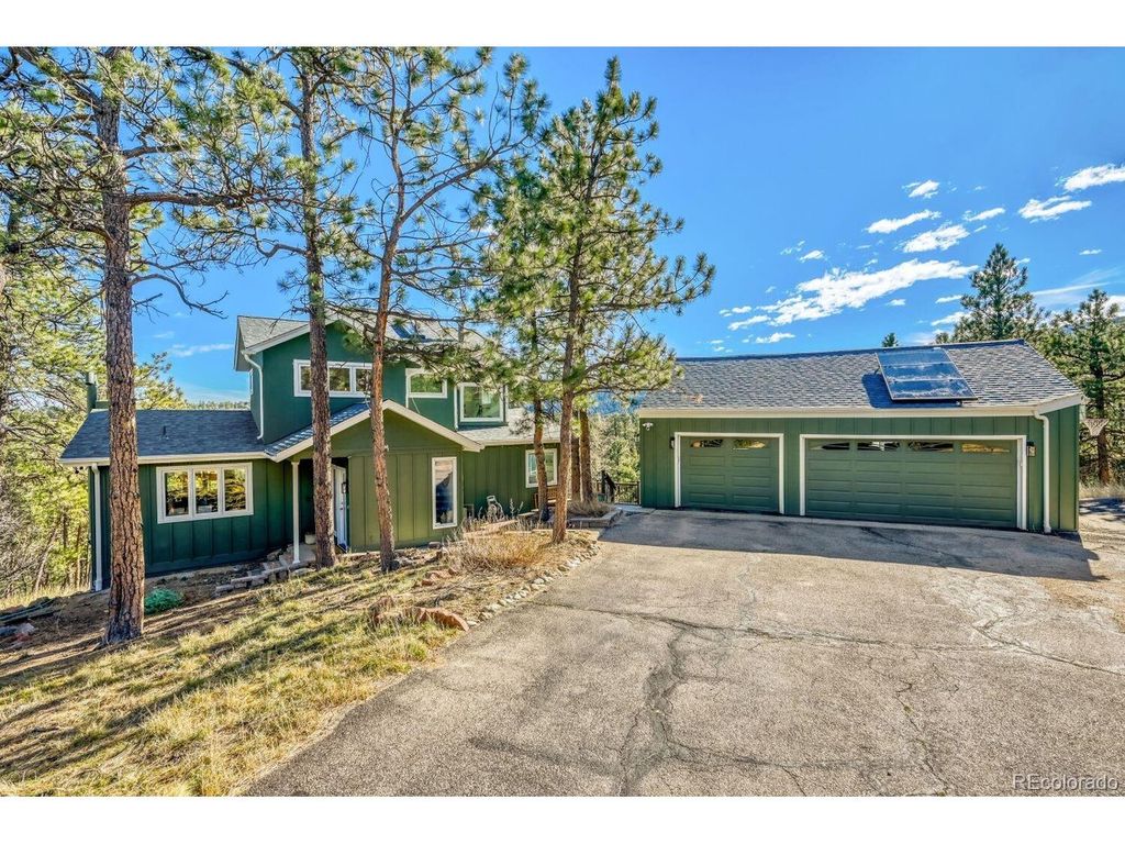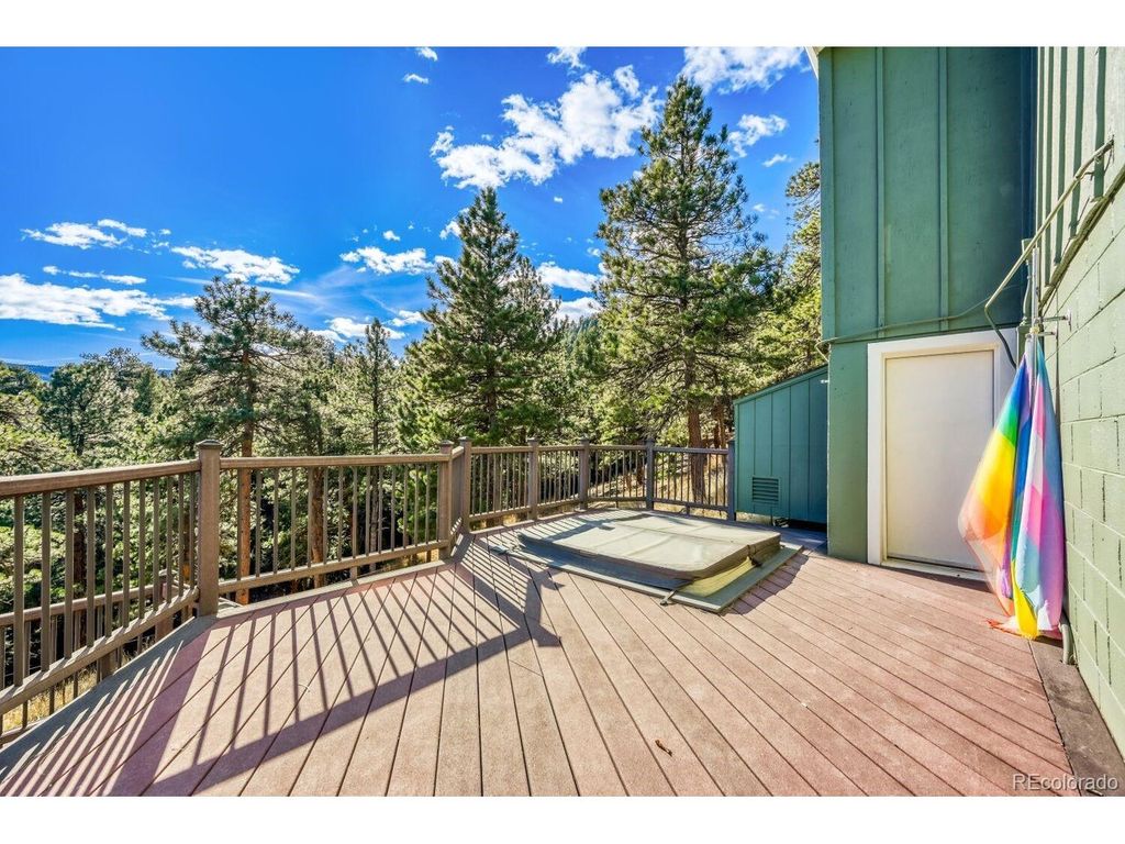 Spectacular home with breathtaking mountain views is a tranquil retreat just 10 minutes from Pearl Street. Natural light flows through this beautifully remodeled home w/newer hardwood floors, updated wood staircase, railings, custom newel posts, newly remodeled primary bathroom w/marble floors, dual shower heads, free standing soaking tub, double sinks w/new quartz counters & skylights. This home has a charming Scandinavian feel. A chef's dream w/ a remodeled gourmet kitchen complete w/ both quartz & granite counters, Viking range w/gas burners, Viking vent hood, microwave drawer, large farm sink, large cabinets w/ pull-out drawers for pantry items & a wonderful coffee bar w/ cabinets & mountain views. The cozy wood burning fireplace surrounded by stone invites you to sit down, relax & enjoy the views. Lots of outdoor spaces for gathering & enjoying the views including a 1,300 sq ft. deck w/ a built-in hot tub (New in 2023), both covered & uncovered deck areas to take in the views, a lovely balcony off the large primary bedroom w/ vaulted ceilings to enjoy sunsets, convenient covered deck off the family room & flagstone patio off the walk-out lower level. Mountain views from nearly every room in the house. 4 bedrooms plus an office w/ a cozy pellet stove & mountain views. Large steam shower seats at least 4 people. This home has been beautifully updated w/ remodeled main floor bathroom w/ beautiful tile. Lots of windows & skylights throughout bring the outdoors in. Solar panels are owned for low electricity bills. Back up generator. Large 3 car garage & a wonderful wine cellar. New light fixtures & outlets, new paint inside & out in 2024. This home is a gem! New roof & septic system in 2023. EV charger in garage is included. Outdoor movie screen & tree swing. Great location close to Betasso Preserve for cycling, hiking & horseback riding. A short drive to Boulder Creek for fly fishing & trails. 30 min drive to Eldora Ski Resort. Short walk to school bus stop.