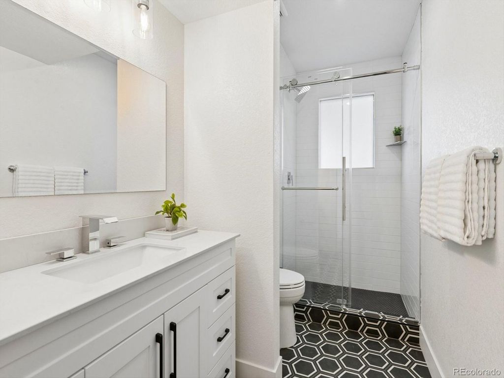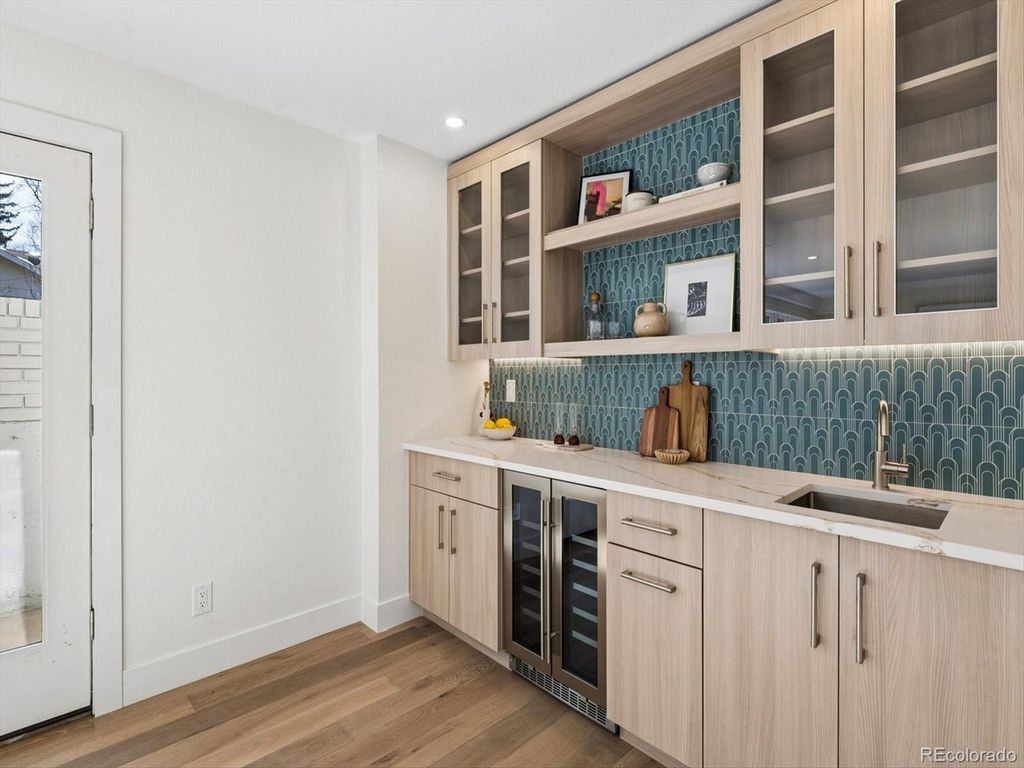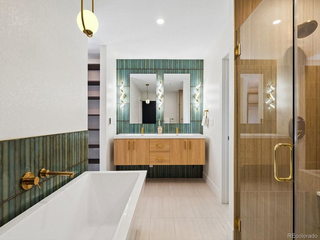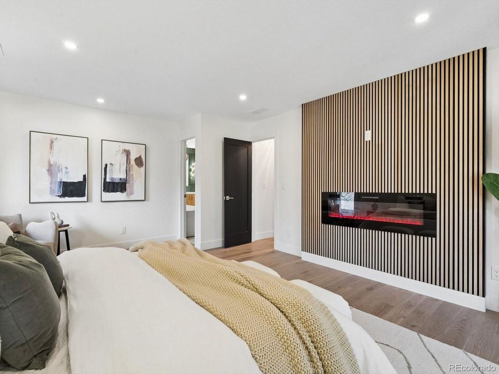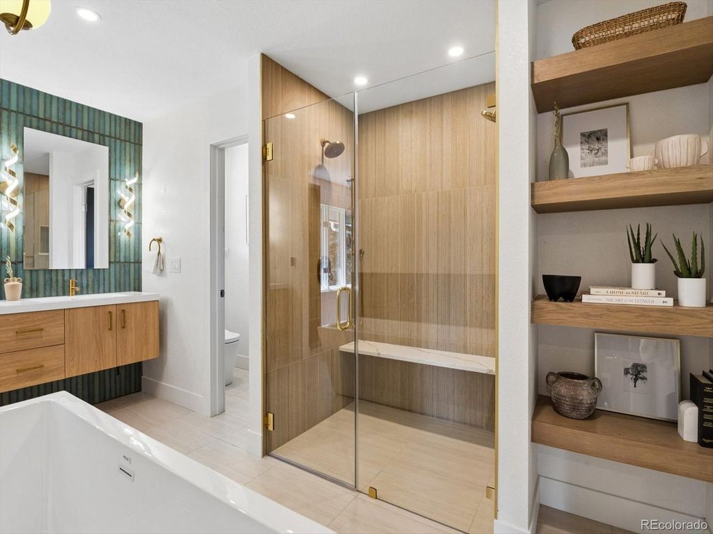 Set within the highly sought after Boulder Country club community, this fully renovated 4 bed, 4 Bath residence blends warm, refined elegance with a sophisticated contemporary aesthetic. From the moment you step inside, the open great room and Chef's kitchen make a striking impression with vaulted ceilings, custom wood beams, fireplace, and wide planked hardwoods throughout. Thoughtful design details elevates the space, including a charming window seat, and an expansive walk-in pantry, outfitted with an abundance of custom cabinetry, Quartz countertops, and a Miele Coffee Station! The heart of the home is the Chefs kitchen and adjacent eat-in dining area, designed for both everyday living and effortless entertaining. Anchored by the 48 inch double-oven gas range and a Sub Zero refrigerator, it features a custom built oversized hood, quartz countertops, and crafted cabinetry. An expansive islands seats 4-6, creating the perfect space for gathering family and guests. The primary suite is a true retreat anchored by a tranquil fireplace and charming window seat. A custom walk-in closet-thoughtfully designed with a stackable washer and dryer which adds an exceptional layer of convenience. The spa inspired bath is designed for the most discerning homeowner. Unwind in the soaking tub or enjoy the oversized shower adorned with custom-organic inspired tile and dual shower heads. The bidet/toilet provides virtually every modern feature imaginable. The lower Garden level is ideal for entertaining with a wood burning fireplace, built ins, and a stylish wet bar complete with a wine refrigerator. The Basement level further expands offering an additional living area, with private bedroom, new 1/2 bath. The systems have all been updated, including a high efficiency electric furnace w/heat pump and central air conditioning, a tankless water heater, and a new roof, providing both peace of mind and energy efficiency. The private backyard and patio are great for entertaining.