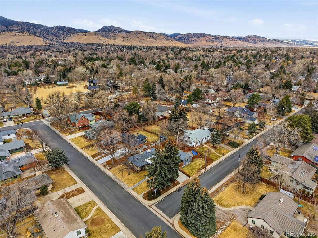 A rare opportunity in classic & quintessential Old North Boulder. Modern & quality renovated ranch home with an addition. It's sitting on well-appointed .28 acre corner lot with bonus 490 sqft detached workshop / garage / possible ADU(?) / office (?). Meticulously maintained & customized by local craftsman/artisan. Flexible open floor plan designed to suit many styles / needs including main level living. Beautiful designer kitchen, hardwood floors throughout, large picture windows with living room view to Flatirons, gas fireplace, & primary suite (w/ bonus room for expansion, extra closet, or another bedroom or office(?)). Primary bedroom opens into serene & private backyard setting. Lower level offers large living space with (2) huge bedrooms & (4) large custom flagstone egresses + wood fireplace. The detached garage / workshop is a dream space for some & ooh the possibilities for others. RV & boat storage too! Enjoy the private backyard w/ 6ft cedar fencing & custom gates, 750+ sqft herringbone brick paver patio & walkway, low maintenance yards, & front porch is perched for a hello. It's central to all amenities including popular Columbine Elementary School & Park, Goose Creek Path, Red Rock Coffee, Mojo, Tangerine, Rayback, AOI Sushi, Santos, Ideal Market, Longs Garden, Rec Center, & so much more.