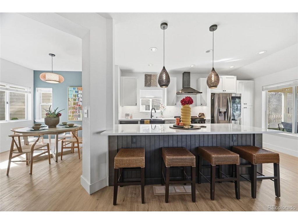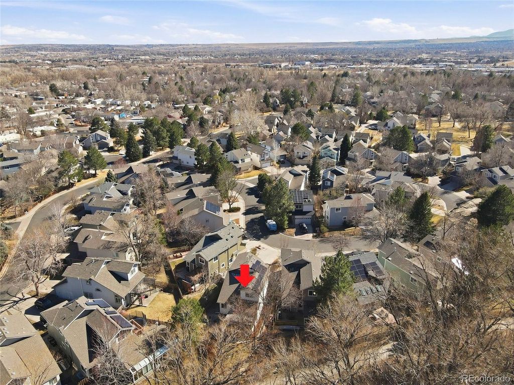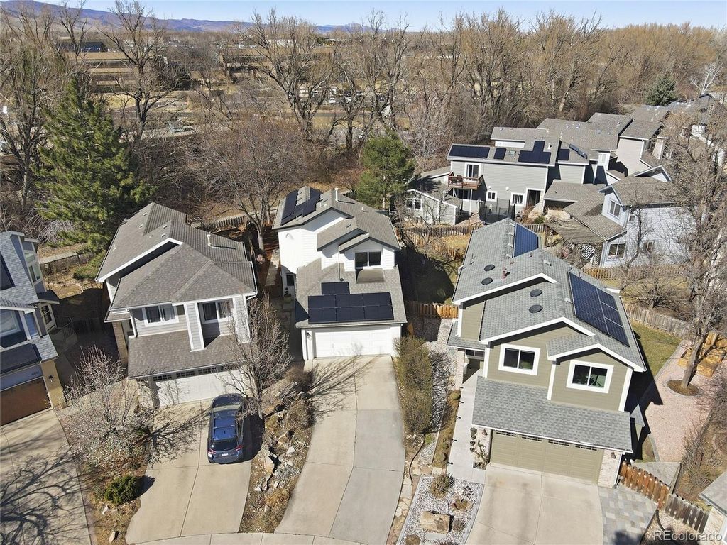 Tucked into King's Ridge this home offers privacy, comfort, and direct access to Boulder's scenic trail and bike network. Discover an ideal home base for an outdoor-driven lifestyle. Surrounded by mature trees, this 4 bed (or 5 with the office)/3.5 bath residence features ~2,300 square feet of thoughtfully designed living space across three finished levels. On the main level, the floor plan flows seamlessly between formal and informal spaces, with a soaring vaulted living room and a sun-drenched dining area that invite gathering and easy entertaining. The kitchen is a true centerpiece, showcasing warm white satin wood cabinetry with quartz countertops, black stainless steel appliances including a ZLine range, and a large island that anchors daily life and apres-adventure meals. Upstairs, the second-level primary suite feels like a treetop retreat with vaulted ceilings and leafy views. A walk-in closet and newly remodeled shower complete the suite, joined by another spacious bedroom and a full hallway bath. The brand-new finished lower level extends your options with a third and fourth bedroom, an additional bathroom, laundry area, and a versatile rec room-ideal for movie nights, a home gym, or gear storage after long days outside. Unwind in the sunroom or step into a backyard sanctuary with mature landscaping, flagstone paths, and an expansive patio with a gas line ready for grilling and al fresco dinners. Backing to the path that links into Boulder's countywide bike trail system, putting miles of riding, running, and walking right at your doorstep. Recent upgrades make the home impressively efficient and low-maintenance: brand-new solar system, new AC, recently installed tankless hot water system, upgraded electrical panel, and programmable irrigation system. All with the convenience of living just minutes from the future Pearl Arts and Entertainment District, public transit, and the dining, culture, and energy of downtown Boulder.