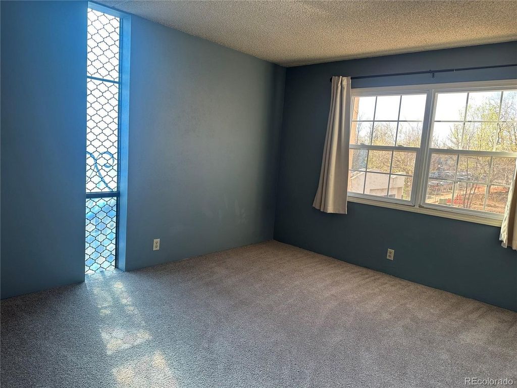 Corner unit with new granite counters in the kitchen. Part of the living room has been converted into a den areawith a dividing wall that could be left up or removed. True 2 bedroom unit with both bedrooms having windows and closets. Large bath with double sinks and seperate tub/toilet area. Association has an indoor pool with a retractable roof and a workout room. Quality construction building. Security buiding close walking distance to CU Campus. Great location!