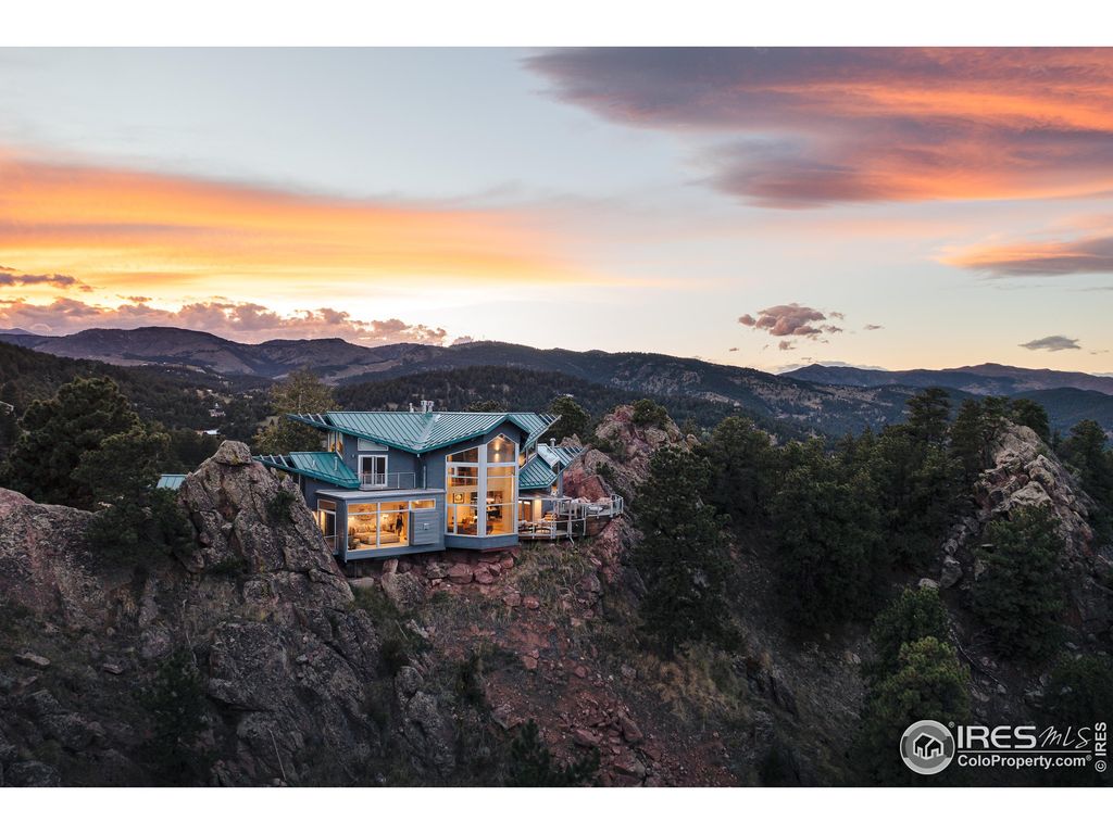 VIEWS! VIEWS! VIEWS! Elevate your life in this magnificent and rare estate perched on the ridge line of the Boulder foothills. Designed by renowned architect EJ Meade of Arch 11 and renovated by top custom builder, Hammerwell, this modern masterpiece is meticulously crafted so that it harmoniously blends the indoor and outdoor spaces into the surrounding rocks. The separate Studio provides privacy for office, yoga, mediation, art, whatever brings you peace and joy. This private and breathtaking oasis is just 6 min to Broadway yet feels lands away. Featured in Colorado Homes & Lifestyles for it's design, quality, and luxury; Come visit "Mountain Star", and remember why you chose to live in Boulder!